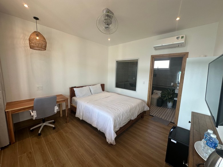 A cozy kitesurfing haven, with a family-friendly atmosphere, encapsulating the essence of Vietnamese charm, blending simplicity, tranquility, and a dash of charm.